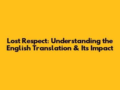 Lost Respect: Understanding The English Translation & Its Impact