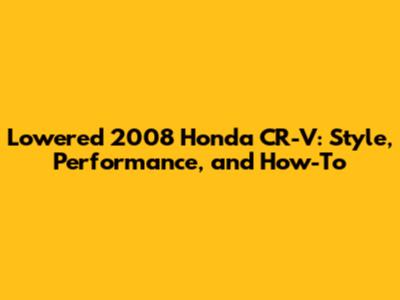Lowered 2008 Honda CR-V: Style, Performance, And How-To