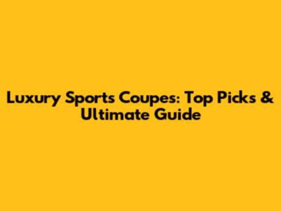 Luxury Sports Coupes: Top Picks & Ultimate Guide