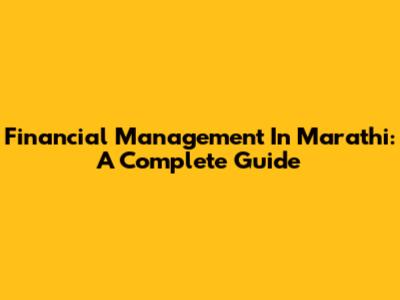 Financial Management In Marathi: A Complete Guide