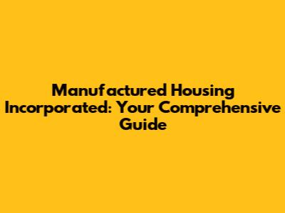 Manufactured Housing Incorporated: Your Comprehensive Guide