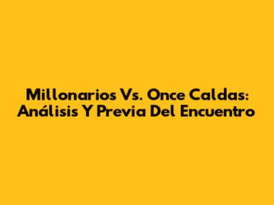 Millonarios Vs. Once Caldas: Análisis Y Previa Del Encuentro