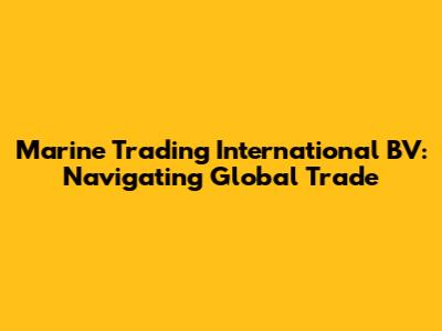 Marine Trading International BV: Navigating Global Trade