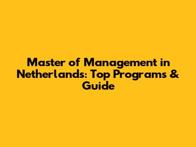 Master Of Management In Netherlands: Top Programs & Guide