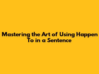 Mastering 'Happen To': Usage In Sentences