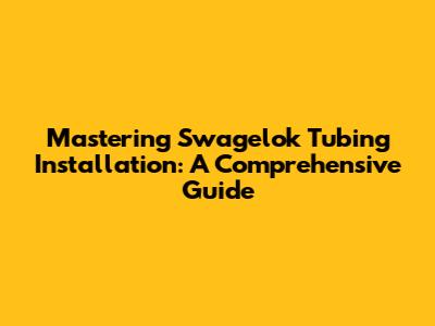 Mastering Swagelok Tubing Installation: A Comprehensive Guide