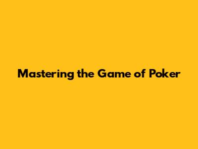 Mastering The Game Of Poker