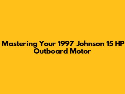 Mastering Your 1997 Johnson 15 HP Outboard Motor