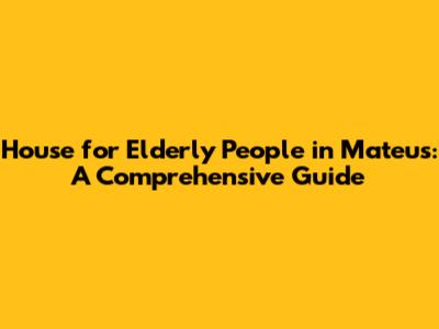 Finding the right house for elderly people in Mateus requires careful planning and research. By understanding the different levels of care, exploring available housing options, and considering financial implications, you can make an informed decision that prioritizes your loved one's comfort, safety, and well-being. Don't hesitate to seek professional guidance and support throughout the process. Good luck, and remember to take things one step at a time!