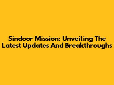 Sindoor Mission: Unveiling The Latest Updates And Breakthroughs
