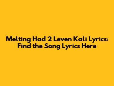 Melting Had 2 Leven Kali Lyrics: Find The Song Lyrics Here