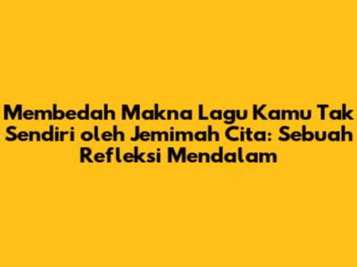 Kamu Tak Sendiri oleh Jemimah Cita adalah sebuah karya yang sangat menyentuh hati. Lagu ini bukan hanya sekadar lagu, tetapi juga sebuah teman, sahabat, dan sumber kekuatan bagi siapa saja yang sedang berjuang. Melalui lirik yang mendalam, aransemen musik yang indah, dan vokal yang penuh penghayatan, Jemimah Cita berhasil menyampaikan pesan yang sangat penting tentang dukungan, persahabatan, dan harapan.