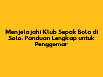 Menjelajahi Klub Sepak Bola Di Solo: Panduan Lengkap Untuk Penggemar