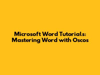 Microsoft Word Tutorials: Mastering Word With Oscos