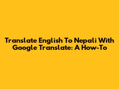 Translate English To Nepali With Google Translate: A How-To