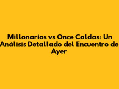 El partido entre Millonarios y Once Caldas es siempre un evento que genera mucha expectativa en la liga colombiana, y el encuentro de ayer no fue la excepción. Antes de entrar en detalles, es importante conocer el resultado final. ¿Cómo quedó el marcador? [Aquí, el resultado final del partido]. Este resultado es el punto de partida para entender el contexto del juego. Para aquellos que no pudieron ver el partido en vivo, o que simplemente necesitan un recordatorio rápido, ofreceremos un resumen general. El resumen incluirá los momentos más importantes del encuentro, como goles, tarjetas rojas, y las jugadas más destacadas. Mantente atento, ya que cada momento del partido es crucial para entender el desarrollo y la dinámica del juego.