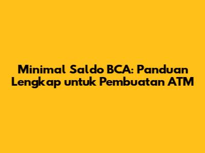 Minimal Saldo BCA: Panduan Lengkap Untuk Pembuatan ATM