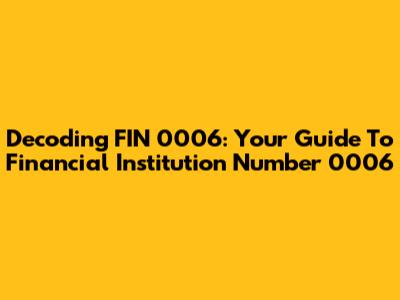 Decoding FIN 0006: Your Guide To Financial Institution Number 0006