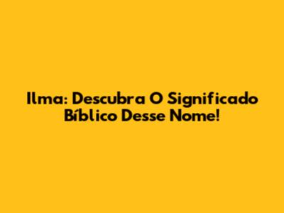 Ilma: Descubra O Significado Bíblico Desse Nome!