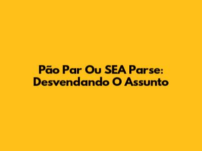 Pão Par Ou SEA Parse: Desvendando O Assunto