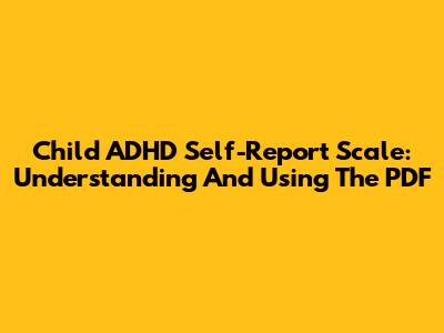 Child ADHD Self-Report Scale: Understanding And Using The PDF