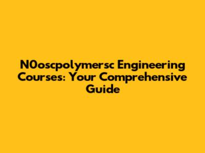 N0oscpolymersc Engineering Courses: Your Comprehensive Guide