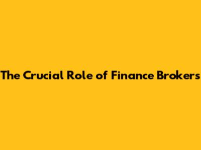The Crucial Role of Finance Brokers