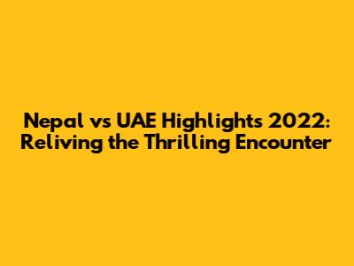 Nepal Vs UAE: 2022 Match Highlights & Key Moments