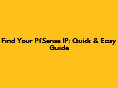 Find Your PfSense IP: Quick & Easy Guide