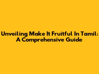 Unveiling 'Make It Fruitful' In Tamil: A Comprehensive Guide