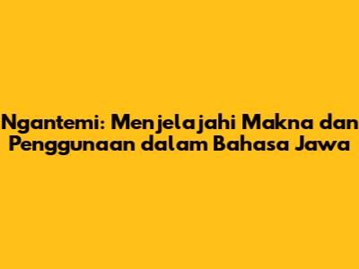 Ngantemi: Memahami Arti Dan Penggunaan Dalam Bahasa Jawa