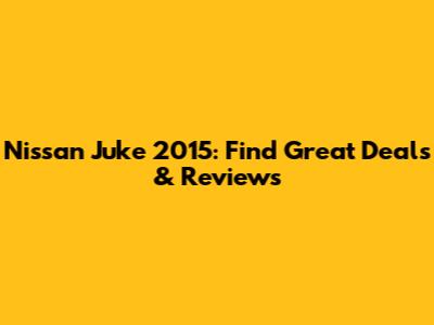 Nissan Juke 2015: Find Great Deals & Reviews