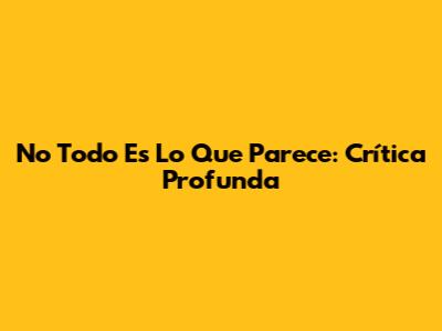 No Todo Es Lo Que Parece: Crítica Profunda