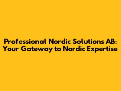 In conclusion, Professional Nordic Solutions AB stands as a beacon of Nordic expertise, ready to guide businesses toward greater efficiency, sustainability, and innovation. By embracing their values and leveraging their services, organizations can unlock their full potential and create a more positive impact on the world. So, why not explore the possibilities and discover how Professional Nordic Solutions AB can transform your business today?