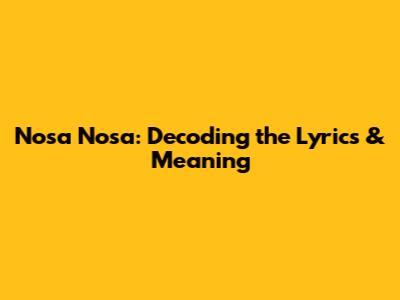 Nosa Nosa: Decoding The Lyrics & Meaning