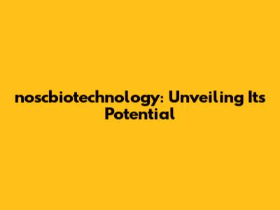 Noscbiotechnology: Unveiling Its Potential