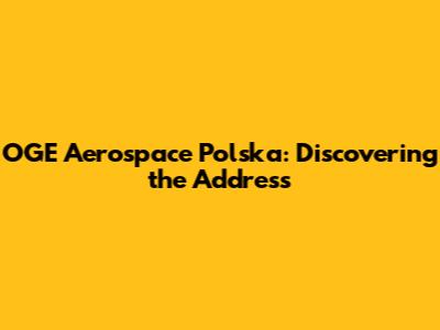 OGE Aerospace Polska: Discovering The Address