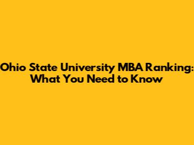 Ohio State MBA Ranking: What You Need To Know