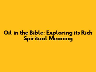 Oil In The Bible: Exploring Its Rich Spiritual Meaning