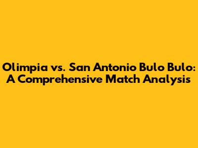 Hey guys! Get ready for a deep dive into the upcoming match between Olimpia and San Antonio Bulo Bulo. We're going to break down everything you need to know, from team histories and player stats to potential game strategies. This isn't just a simple preview; we're giving you the ultimate lowdown to get you prepped for an awesome match. Let's get started, shall we?