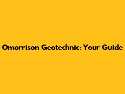 Omorrison Geotechnic: Your Guide