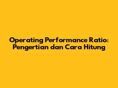 Apa itu Operating Performance Ratio?