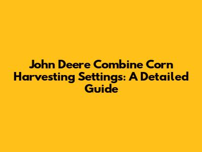 Optimal John Deere Combine Settings For Corn Harvesting