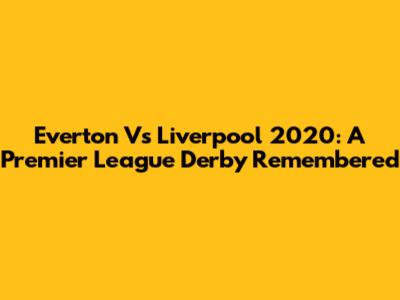 Everton Vs Liverpool 2020: A Premier League Derby Remembered
