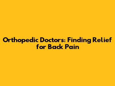 Orthopedic Doctors: Finding Relief For Back Pain