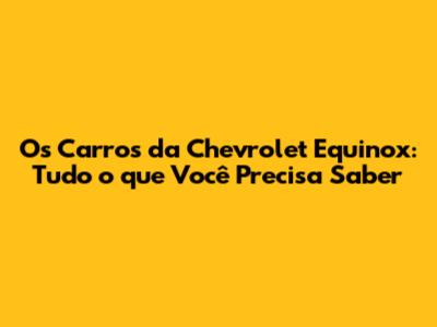 Os Carros Da Chevrolet Equinox: Tudo O Que Você Precisa Saber