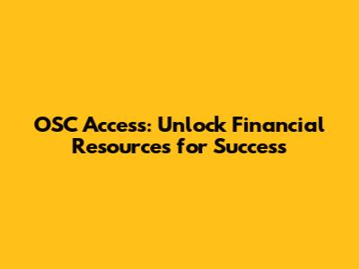 OSC Access: Unlock Financial Resources For Success