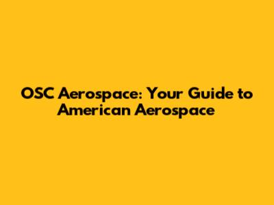 OSC Aerospace: Your Guide To American Aerospace