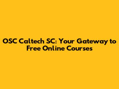 OSC Caltech SC: Your Guide To Free Online Courses