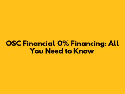 OSC Financial 0% Financing: All You Need To Know